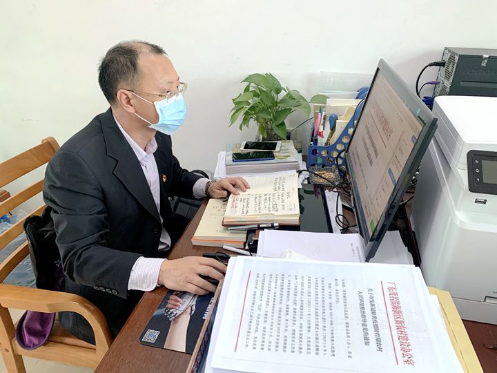 根據(jù)當?shù)卮迕穸嗄陙硐碌貏谧鞯牧晳T,他把田間地頭作為了防疫宣傳工作的重點場所。拎著小喇叭,奔走在田埂地頭的他,除了主動向村民宣傳出入佩戴口罩、減少聚集、不走村訪友等防疫要求外,還積極向村民宣講疫情最新消息,引導村民堅定信心、科學防控,做到不造謠、不信謠、不傳謠。 全村1412戶村民,他配合村委深入排查每一名村民的動向及身體狀況,從外地回來人員返鄉(xiāng)前14天的去向更是核查重點,他都詳細詢問并協(xié)助登記造冊。由于電腦操作不夠便捷,他便夾雜了一些手寫的臺賬資料,便于走村穿戶時仍能及時整理出村里人員健康動態(tài)信息并按時向上級部門報送。特別是在架炮村發(fā)現(xiàn)一名廣州返鄉(xiāng)人員與新冠肺炎確診患者有密切接觸史后,他迅速指導開展落實居家隔離措施,并每天上門跟蹤該返鄉(xiāng)人員的體溫及身體狀況,直至其解除隔離,他才大大的松了一口氣。