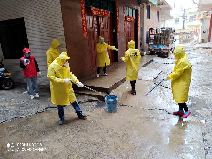 得到組織批準的當天下午,黃杰就自駕車,帶著集團捐贈社區(qū)的120斤消毒水等防疫物資趕到了南街社區(qū)居委會。一去到,他就背起了40斤重的消毒噴桶,跟著居委會工作人員開始了走街串巷的消毒工作。為加強防疫防護知識的宣傳,有長期駐村扶貧經(jīng)驗的黃杰還用黎話自編了一個順口溜: