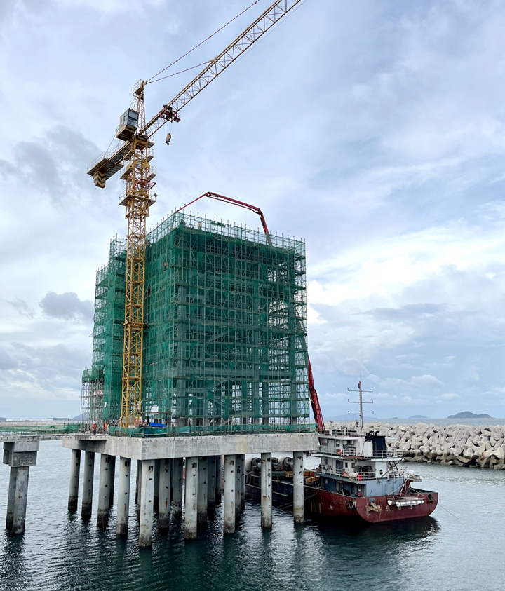 不負(fù)厚望,喜報(bào)頻傳!繼6月29日茂名港博賀新港區(qū)東區(qū)油品碼頭工程水域公用管廊棧橋現(xiàn)澆面層完成澆筑后,6月30日下午,油品碼頭工程2#工作樓喜封金頂,雙重獻(xiàn)禮慶祝建黨101周年!