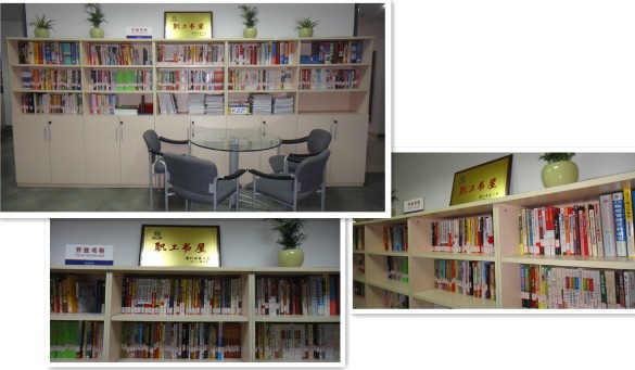 位于速傳物流辦公區(qū)行政部的開放書架已擺滿圖書,分為法律、經(jīng)管、勵志心理、傳記、居家、養(yǎng)生等種類,期待大家在工作之余駐足閱讀,積極借閱。