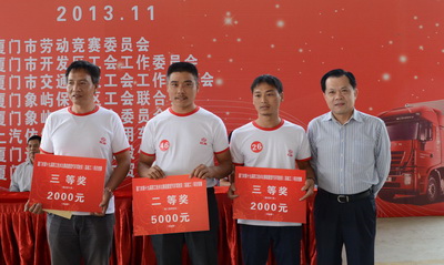 經(jīng)過理論培訓(xùn)及考試,激烈場(chǎng)地駕駛、排故障比武,最終三十多名司機(jī)贏得行業(yè)高級(jí)工證書。象嶼股份旗下太平物流車隊(duì)的參賽選手獲得較好成績(jī)。陳建立和林本來分獲四、五名,將被市勞動(dòng)競(jìng)賽委員會(huì)授予“技術(shù)能手”榮譽(yù)稱號(hào);范思光獲得第九名,陳民獲得第十四名。據(jù)了解,獲得第一名的選手將在明年4月份獲得廈門市人民政府授予的“五.一”勞動(dòng)獎(jiǎng)?wù)隆?span lang="EN-US">