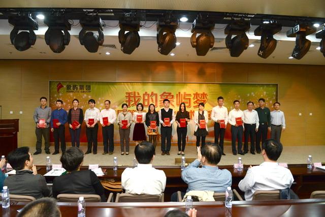 集團(tuán)公司王龍雛董事長、邵蕰默副書記、陳偉彬原副書記、象嶼保稅區(qū)管委會(huì)薛志宏處長、集團(tuán)公司劉信平副總裁、林志勇總裁助理等為征文、攝影、演講比賽獲獎(jiǎng)人員頒獎(jiǎng)。