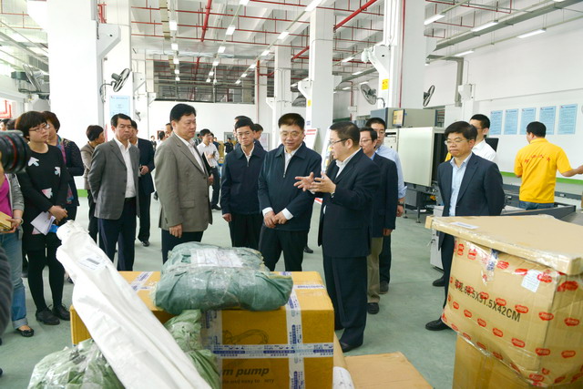 調(diào)研現(xiàn)場,王蒙徽書記等市領(lǐng)導(dǎo)聽取了王龍雛董事長、陳方副總裁對廈門跨境電商產(chǎn)業(yè)園情況的介紹,察看了作業(yè)現(xiàn)場。王書記在調(diào)研過程中對象嶼集團在自貿(mào)試驗區(qū)推動過程中邊摸索、邊推動,敢于先行先試,開拓海運快件物流新通路,構(gòu)建廈門跨境電商產(chǎn)業(yè)園的新思維、新模式給予了肯定,對海關(guān)、國檢給予的鼎力合作支持表示感謝。