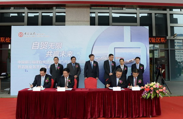 當(dāng)天上午,揭牌儀式后,象嶼集團(tuán)還與廈門中行自貿(mào)區(qū)支行、廈門工商銀行自貿(mào)區(qū)支行簽定戰(zhàn)略合作協(xié)議。廖世澤副總裁代表象嶼集團(tuán)簽約。